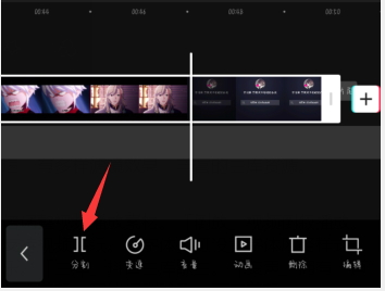 4、点击底部菜单栏分割功能,在多余部分结尾添加一个分割线,选中多余的部分,删除即可。