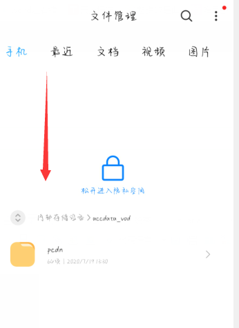 2、在文件管理页面,下拉直到出现锁定符号为止,这个时候会自动跳转。
