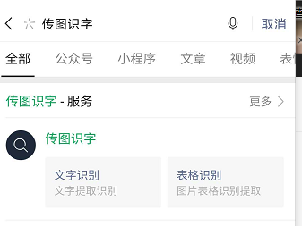 1、打开微信,点击搜索,选择公众号,在搜索栏中输入“传图识字”,并关注公众号。