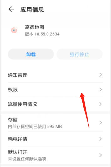 5、进去高德地图之后,点击权限。