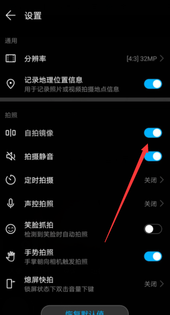 3、把【自拍镜像】后面的开关关闭即可。