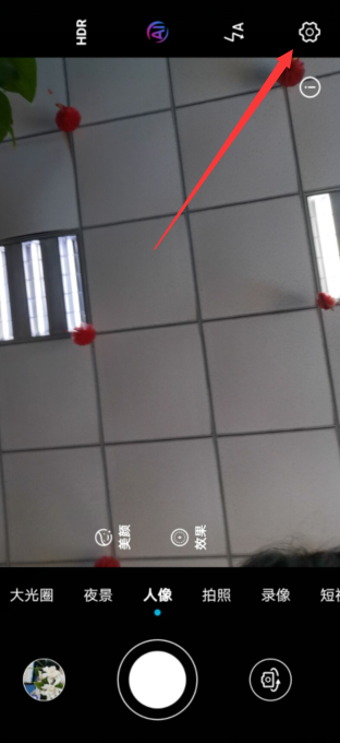 2、进入后切换到自拍,并点击右上角的设置图标。