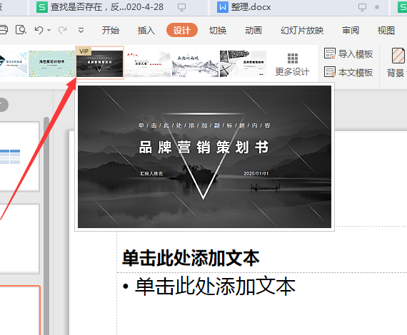 以ppt为例,其幻灯片主题模板在工具栏上面的设计主题里面。其设置主题模板的方法如下: