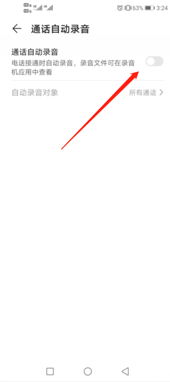 5、点击【通话自动录音】后,将其右侧的开关关闭即可。