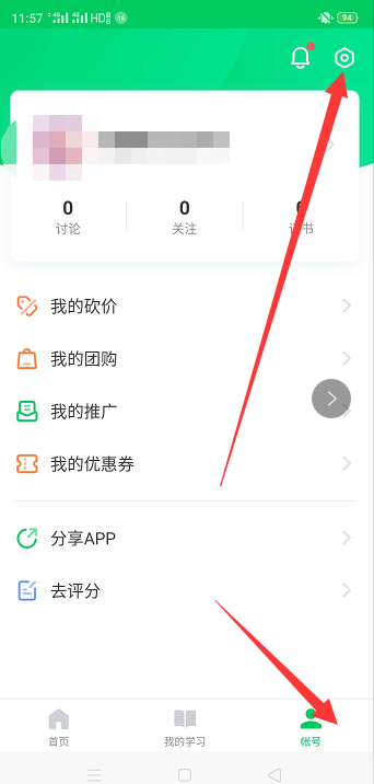 1、打开进入 中国大学MOOC后点击右下角的账号,并点击右上角的设置。