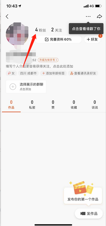 3、进去个人主页之后,可以看到粉丝数量,点击粉丝;