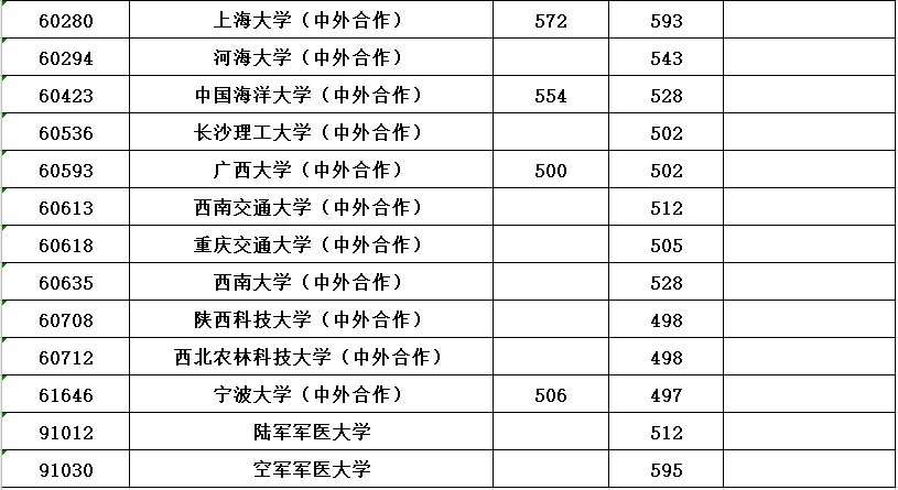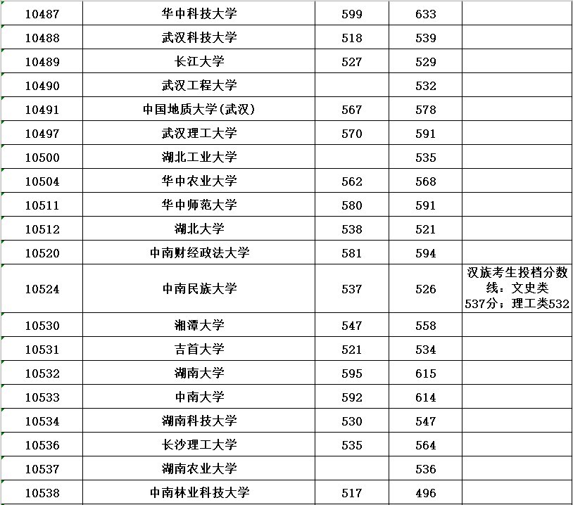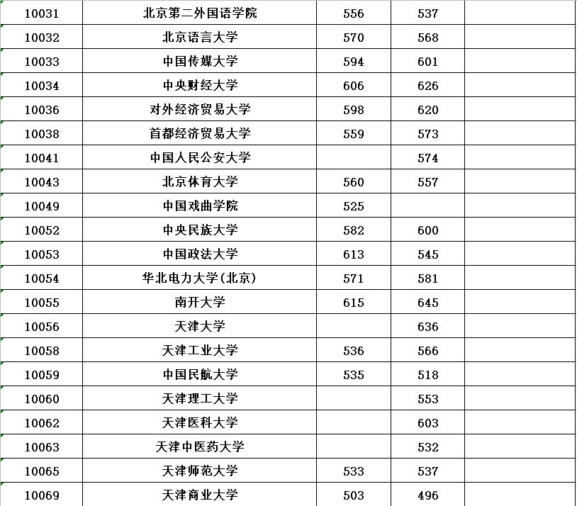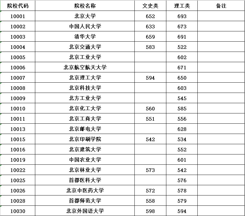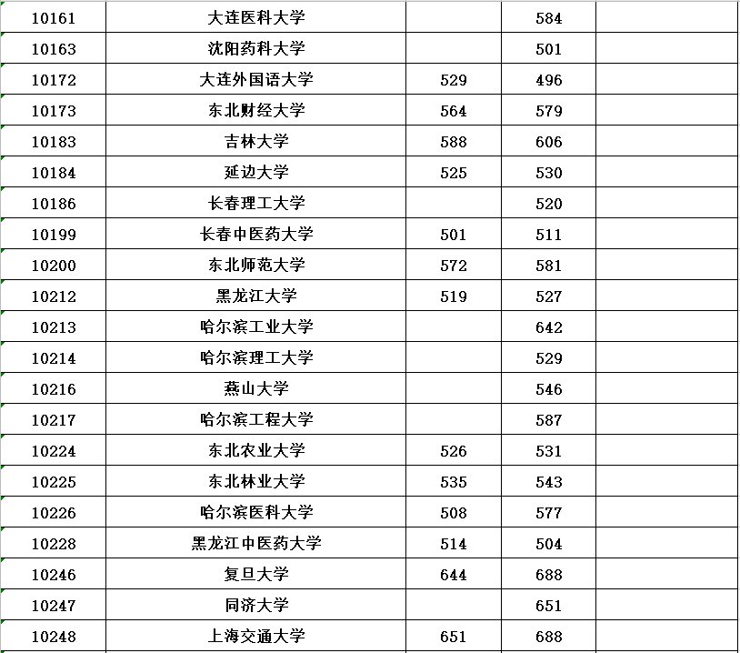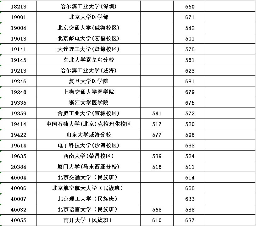 全国各所大学本科第一批具体分数线请看下表(表中空白处表示无出档考生)。