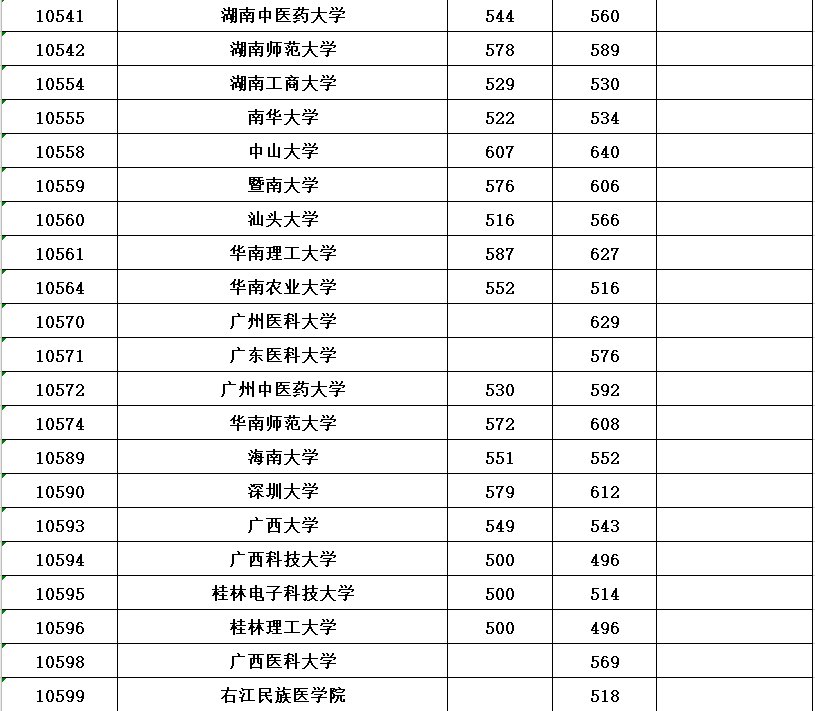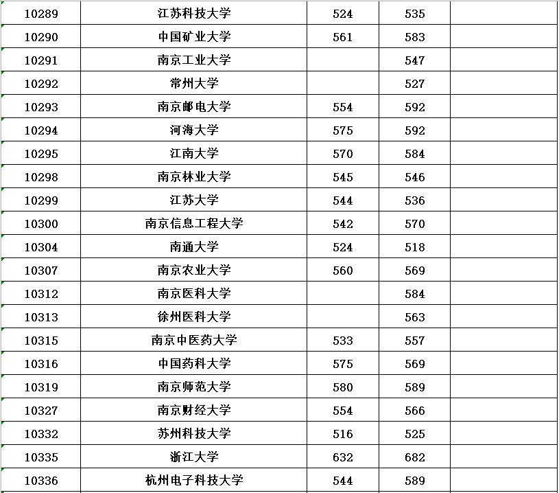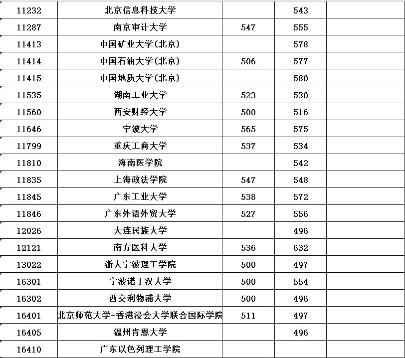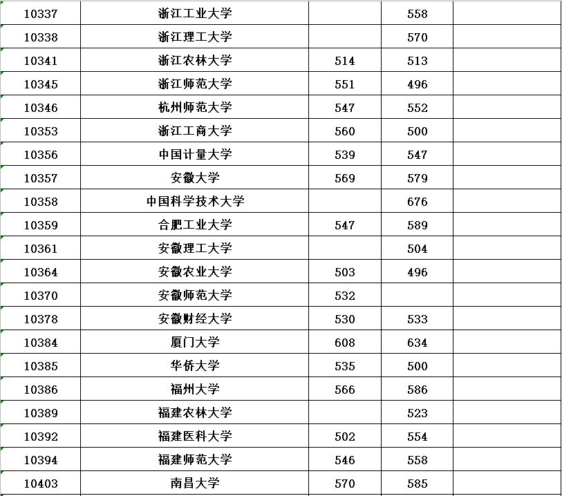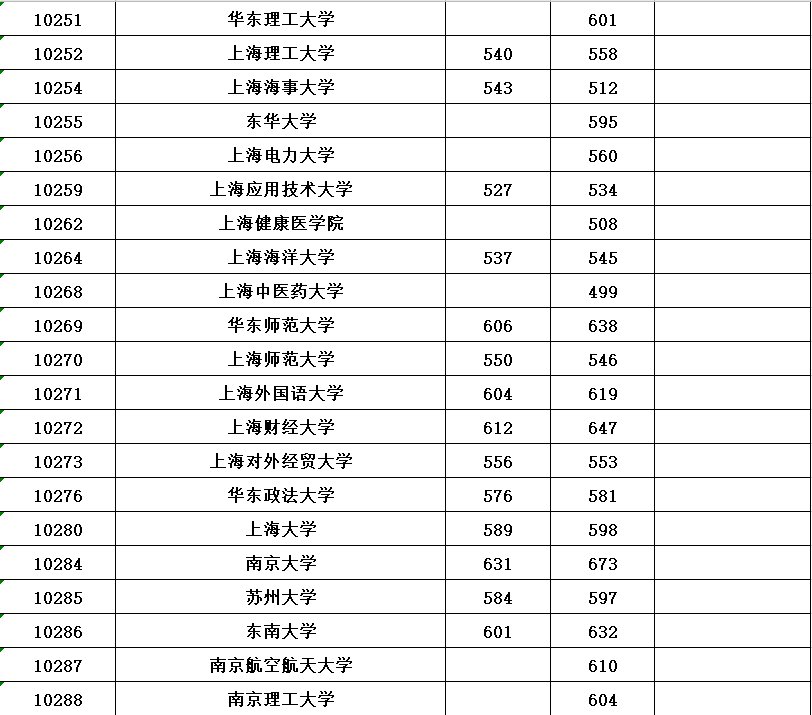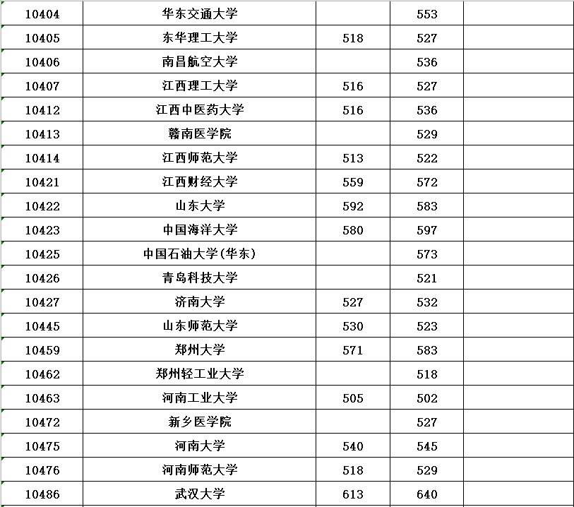 全国各所大学本科第一批具体分数线请看下表(表中空白处表示无出档考生)。