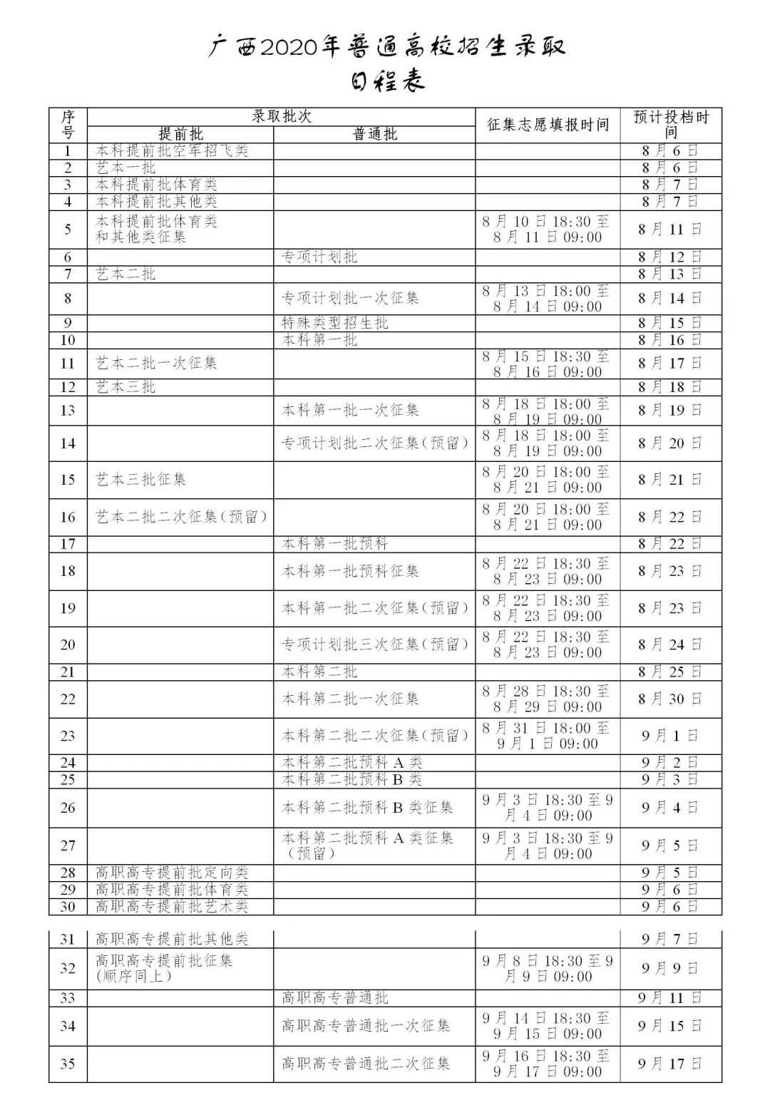 广西2020年普通高校招生录取工作将于8月6日正式开始。