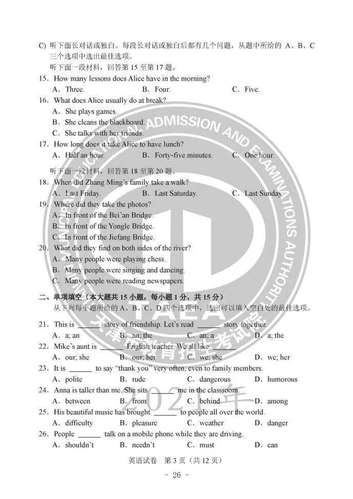 成绩公布时间:按照往年惯例,中考成绩预计考试后20天左右公布