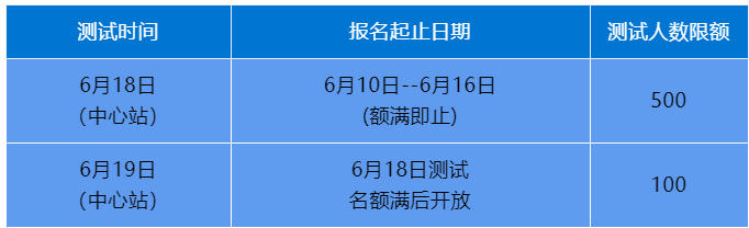 计划开放的测试场次及报名时间: