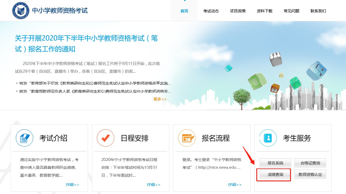 1.打开中小学教师资格考试网,点击“成绩查询”