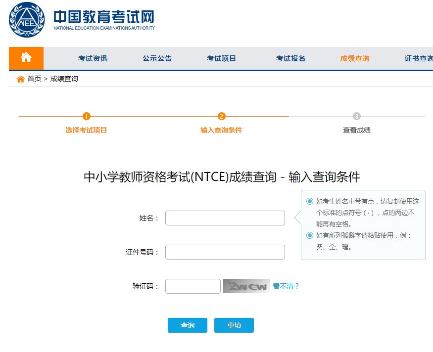 1.打开中小学教师资格考试网,点击“成绩查询”