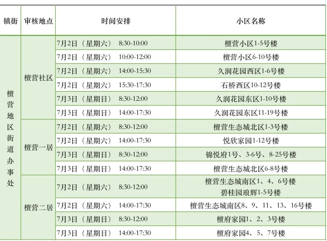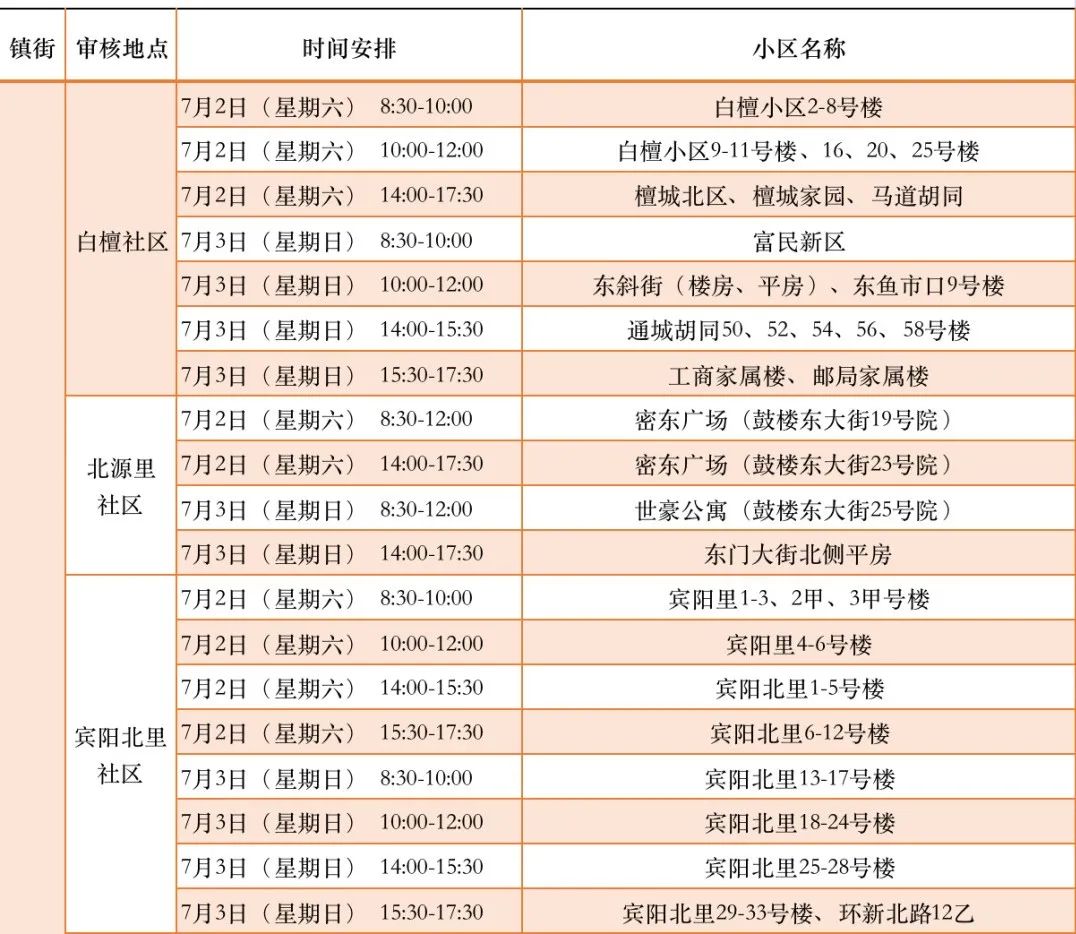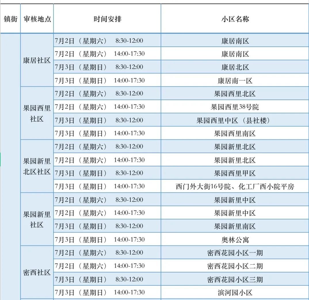 附:城区各社区信息审核时间安排表