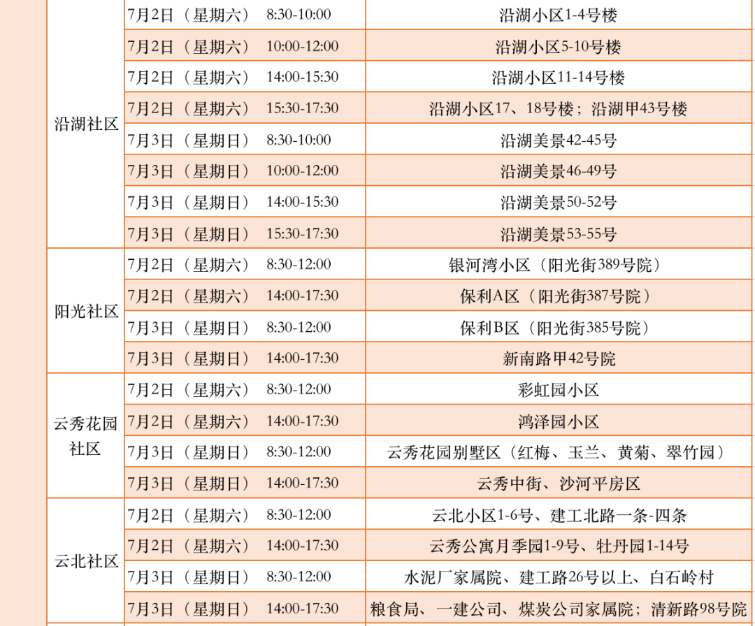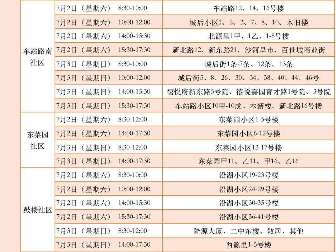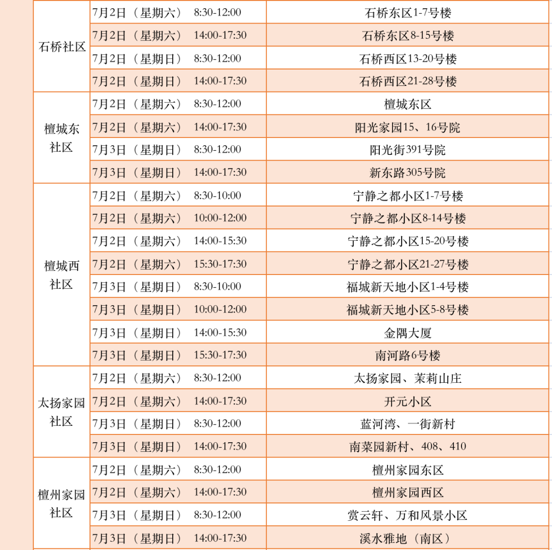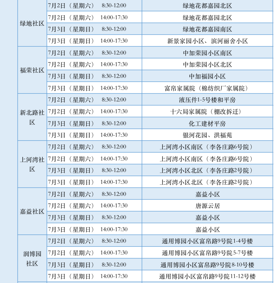 附:城区各社区信息审核时间安排表
