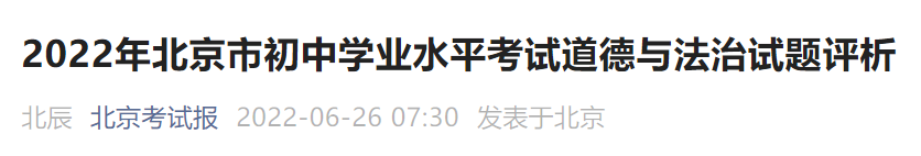 2022年北京市初中学业水平考试道德与法治试题评析