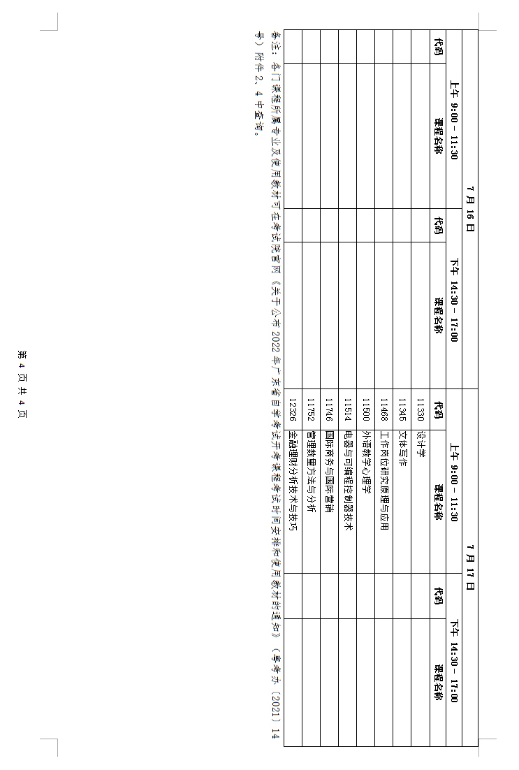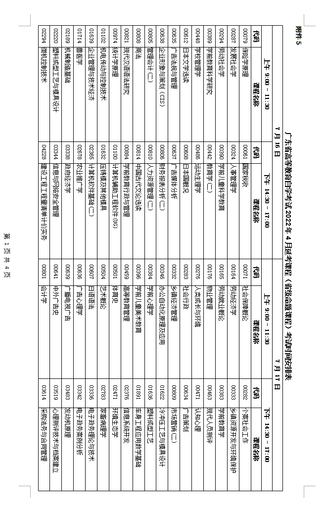 全国统一命题课程按照全国考办2022年上半年高等教育自学考试延期工作的安排,原定下半年10月22日至23日的考试课程安排不变,增加24、25日两天考试时间,用于安排10月考试计划中没有的4月全国统一命题课程(目前各门课程的具体考试时间暂未确定,以全国考办下发安排为准),使全国统一考试的年度考试科目达到全覆盖。