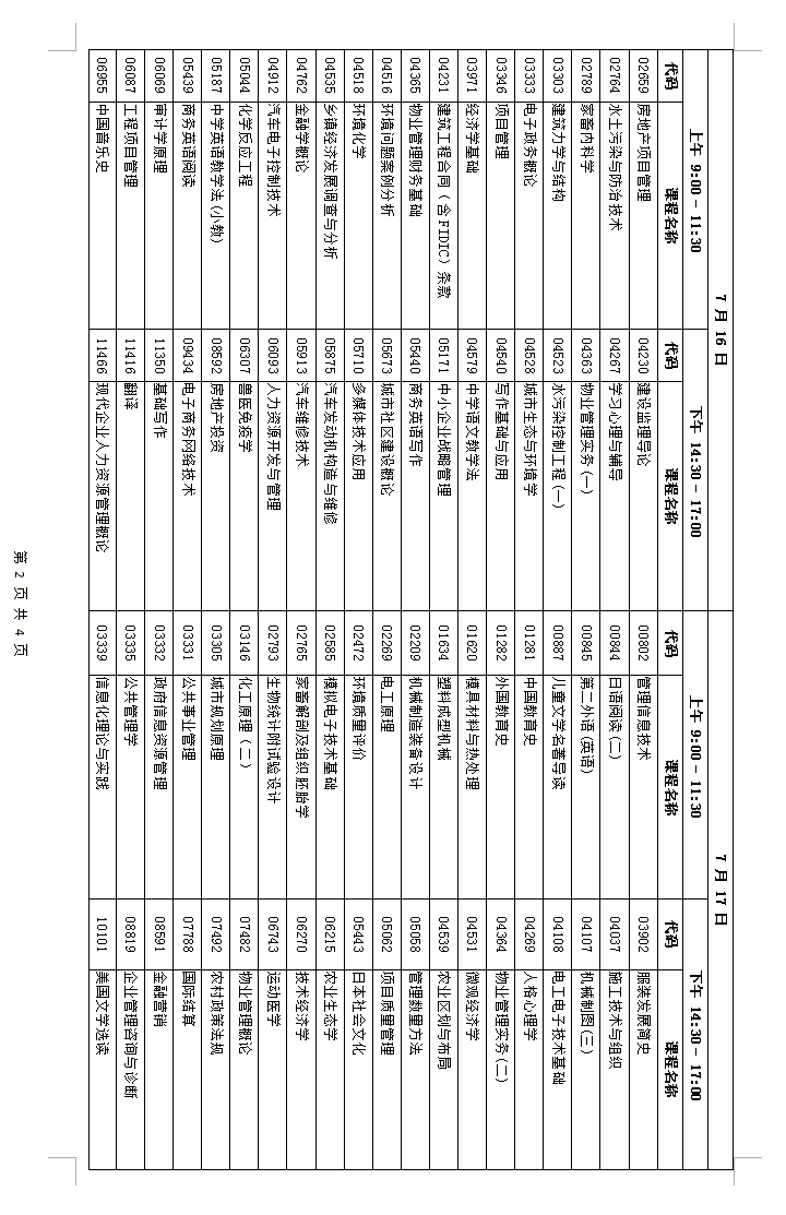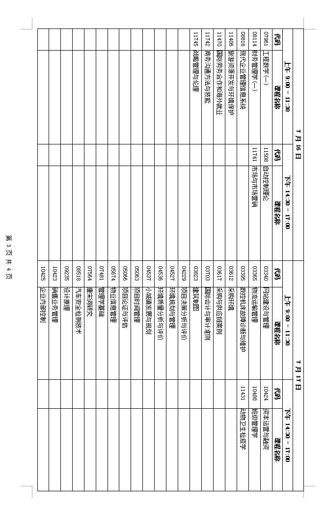 三、考试课程时间安排