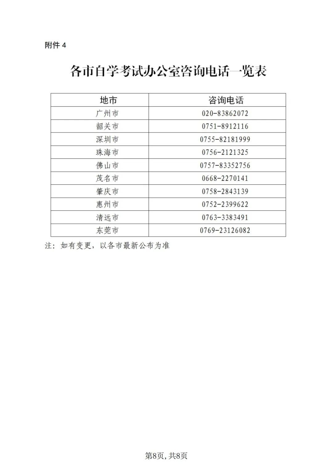 (三)报考过程中遇到的问题直接向当地自学考试办公室咨询(附件4)。其他未尽事宜,请考生密切关注广东省教育考试院官方微信(微信号:gdsksy)和网站(网址:http://eea.gd.gov.cn)及各地自学考试办公室发布的相关信息。
