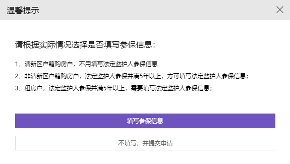 4、【参保信息】在填写完【房产信息】点击下一步时,系统会提示以下信息,用户根据自己的实际情况填写。