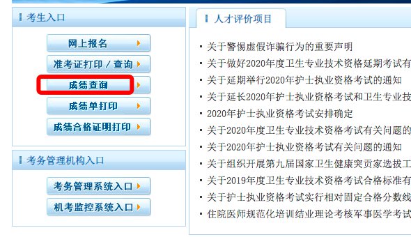 第一步:进入中国卫生人才网(https://www.21wecan.com/),点击『成绩查询』