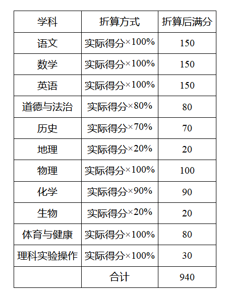 考生实际得分作为毕业成绩,高中阶段学校招生录取成绩按以下方式折算。