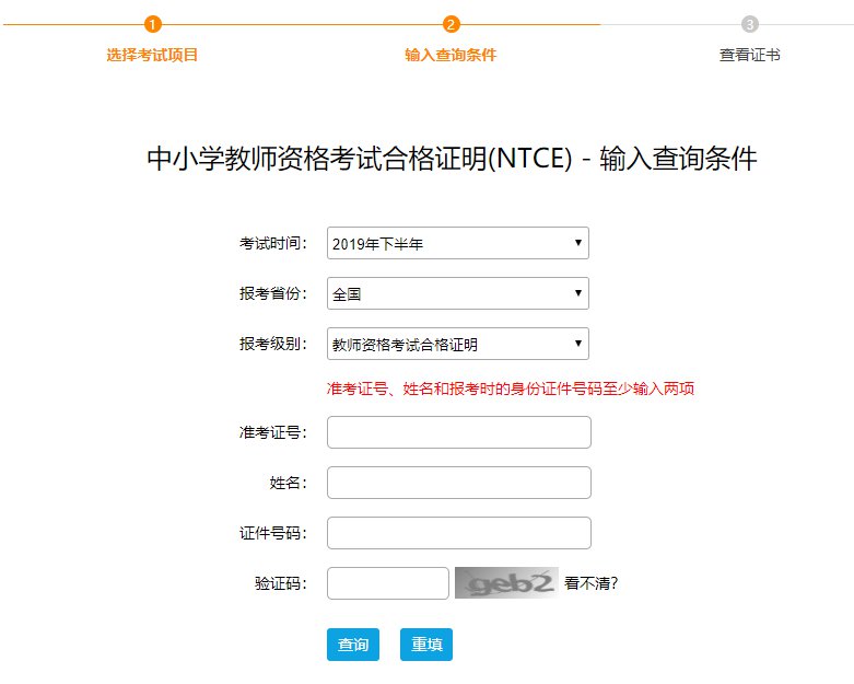 第二步:选择考试时间、省份,输入准考证号、姓名和报考时的身份证件号码(至少输入两项,证件号码区分大小写),点击查询按钮进行查询。如果输入信息正确,对应考试的成绩信息将会在下一个页面列出。