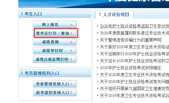 第一步:进入中国卫生人才网(https://www.21wecan.com/),点击”准考证打印/查询“