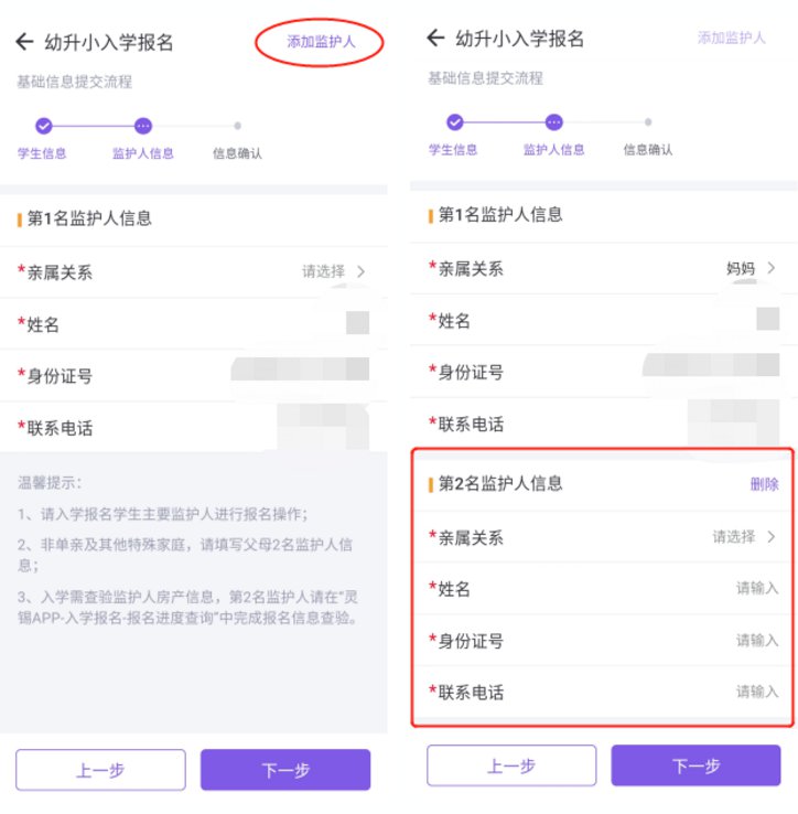 如实填写监护人基础信息(非单亲及其他特殊家庭,请填写父母2名监护人信息),点击右上角“添加监护人”可进行第2名监护人基础信息填写;