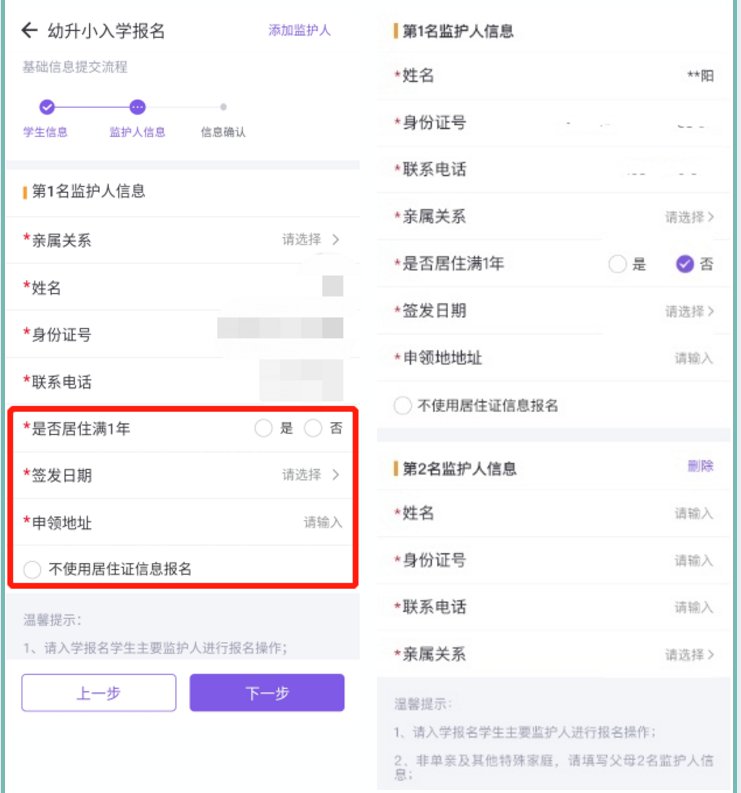4.确认第1名监护人居住证信息及第2名监护人信息,若有误可返回之前步骤进行修改操作;