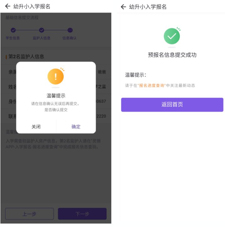 3.确认第2名监护人信息,若有误可返回之前步骤进行修改操作;