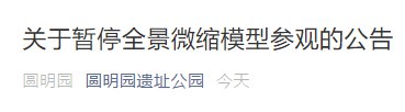2020北京圆明园五一暂停全景微缩模型参观的公告