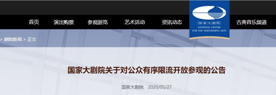 国家大剧院6月2日起限流开放参观公告
