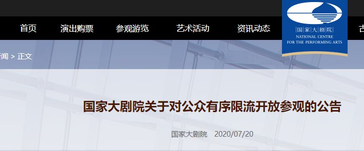 国家大剧院对公众有序限流开放参观公告