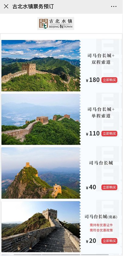 【门票预约平台】“古北水镇商城”官方微信号