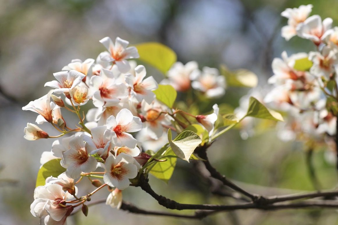 沿着山路探寻桐子花,稀疏树影间,可见到布满山间的白色花朵。花开素白不争艳,蜂蝶知其有异香,白里透红的桐子花花团锦簇,宛若覆盖着一层薄薄的细雪。