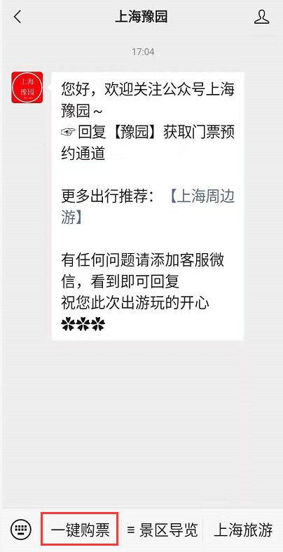 1. 关注“上海豫园”微信公众号,在对话框选择“一键购票”。