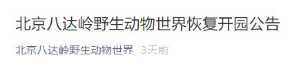 根据《新冠肺炎流行期间北京市等级旅游景区防控指引》,结合八达岭野生动物世界实际,现将景区恢复开放相关事宜公告如下: