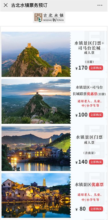 1、手机购票:古北水镇商城