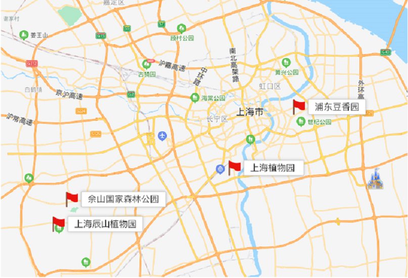 青浦竹博园、上海植物园、上海辰山植物园、佘山国家森林公园