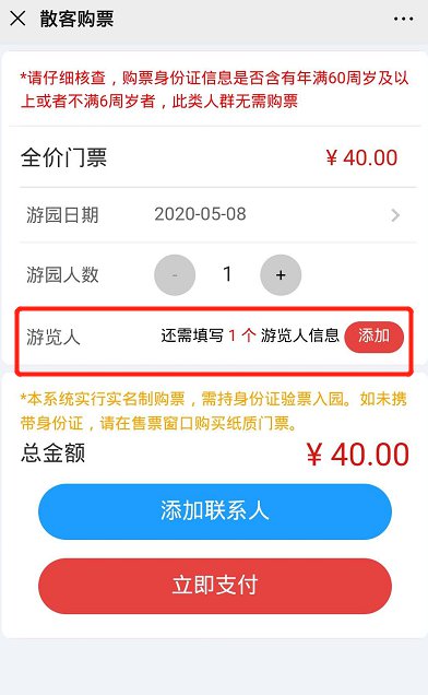 3、实名制添加游客信息
