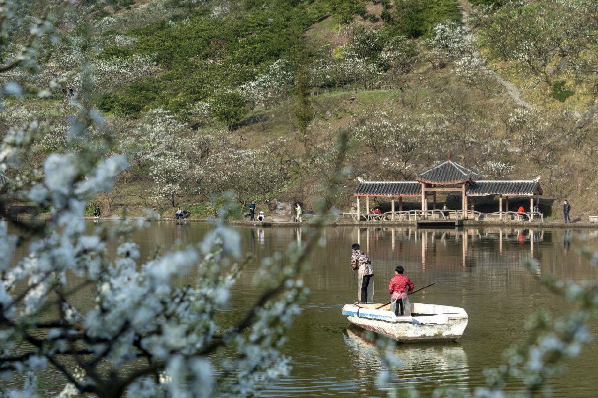 除了观赏李花,该李园内还有100亩休闲垂钓区,游客也可以享受李花树下垂钓的乐趣。游玩之余,还可以购买村民自养、自种的生态农产品。