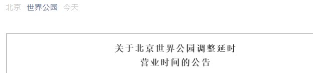 关于北京世界公园调整延时营业时间的公告
