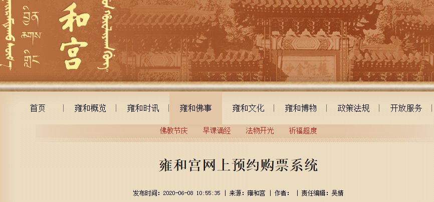 未网上预约购票的游客信众可现场购票,每日限额20000人。在“现场购票通道”排队,查验“北京健康宝一本人信息扫码登记”,到售票窗口购票,经测温、安检后,凭门票进入雍和宫。现场购票人员需遵守本场所分时限流规定,按现场调控进入雍和宫。