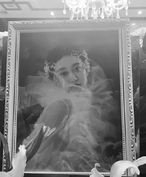 孙侨潞的遗照和她所扮演过的角色一样,穿着一袭纱裙仿若仙女。她的灵前被不同品种的鲜花所环绕,让人不自觉地联想起了“美琪”去往“魔仙堡”。