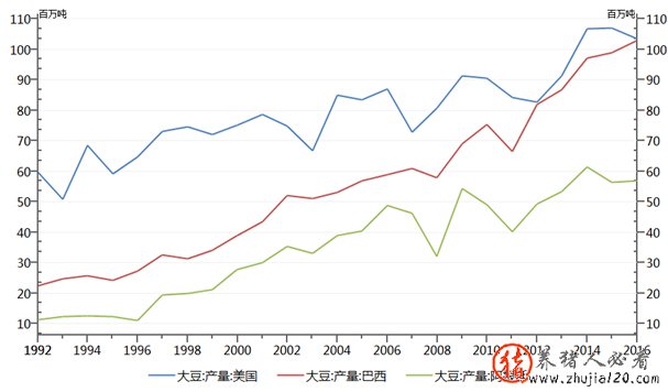 本次报告将引导市场对美豆新作形成高需求、低库存的预期,这样就使得后期美豆产量不能再有任何闪失,后期大豆播种及生长期天气炒作约摸更为凶猛,9月份美豆产量前景断定之前,美豆市场集体处于易涨难跌的约摸性较大。美国、巴西及阿根廷大豆产量如图1所示。