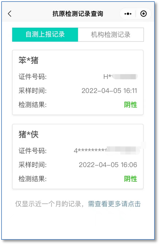 第二步:选择【自测上报记录】,可查询抗原自测结果上报记录。