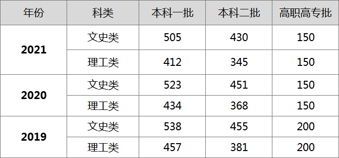 2019-2021年宁夏普通高考总分一分段统计表(文史类)