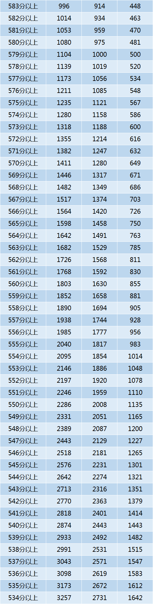 这张表是填报高考志愿的“神器”,用好这个表格,某种程度上可以决定你能去哪所大学、学习什么样的专业。因为它显示了每一个分数全区考生有多少名,能让你计算出自己的排位。