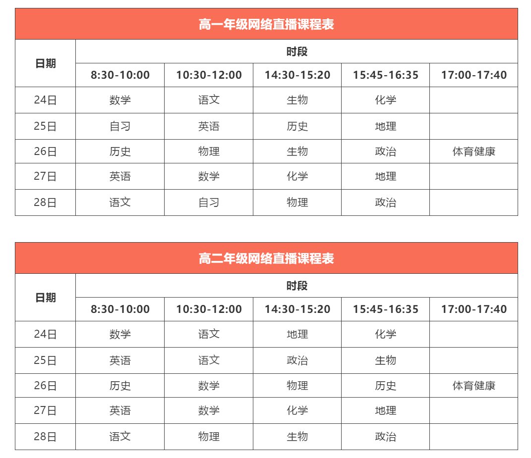 2月24日-28日课程表
